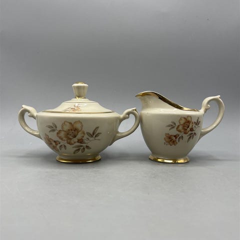 Arabia Myrna kahvikannu ja kermakko. Design Olga Osol. Piippuleimat.