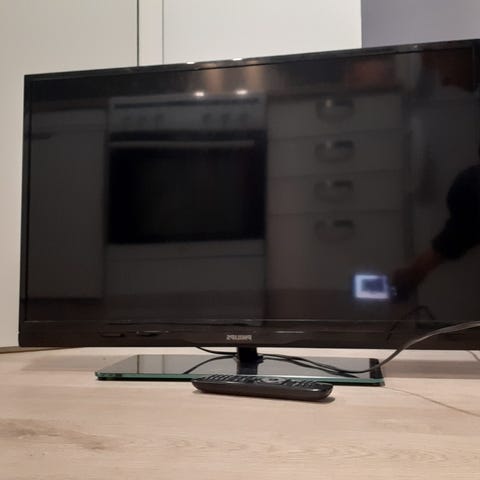 Philips televisio, musta väri. Kuvassa näkyy Philipsin logo ja television sivussa painikkeet. Sopii kotikäyttöön televisiolähetysten katseluun. Televisio vaatii kanavien katselua varten digiboksin. Kaikki television katselua varten tulee mukana.