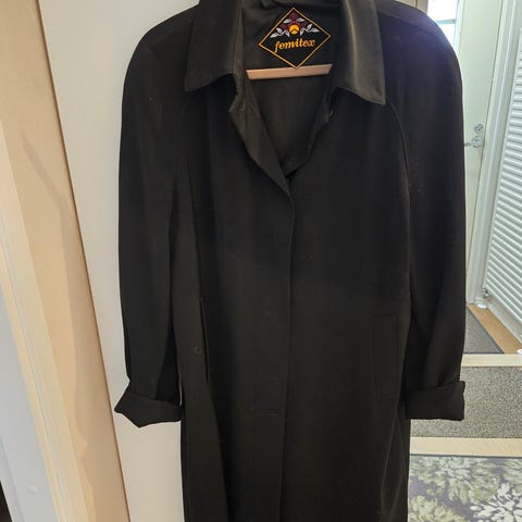 Myydään pidemmän mallinen musta takki, koko 44, nouto tai postit ostajalle.
