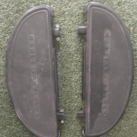 Kuvien mukaiset Harley-Davidson astinlautojen pintapalat. Toisen pinnan runko vähän loivasti taipunut, palautettavissa suoraksi kyllä.. uusia kellutuskumeja tulee 4 kpl mukaan kun kuvassa näkyvästä pussista meni jo puolet toisaalle.. toises laudas kaks kumia tallella eli on sit kahta vaille joka reikään kumit..
