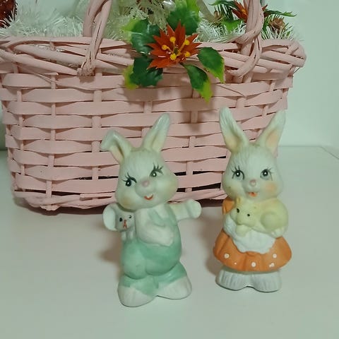 Pääsiäsipupuja, yksi iso (korkeus noin 23 cm) ja kolme pientä.
