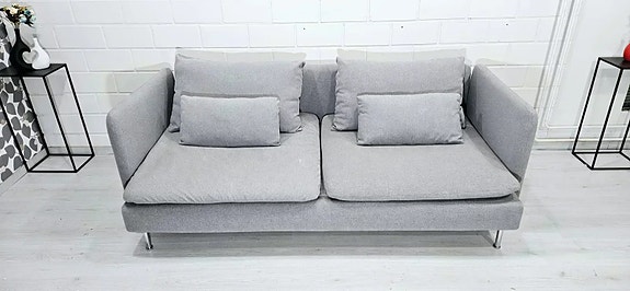 Sohva on hyvässä kunnossa. Päälliset juuri pesty. Päälliset ovat irrotettavat runko myöden. Mitat Leveys 230cm, syvyys 90cm. Väri tummanharmaa.