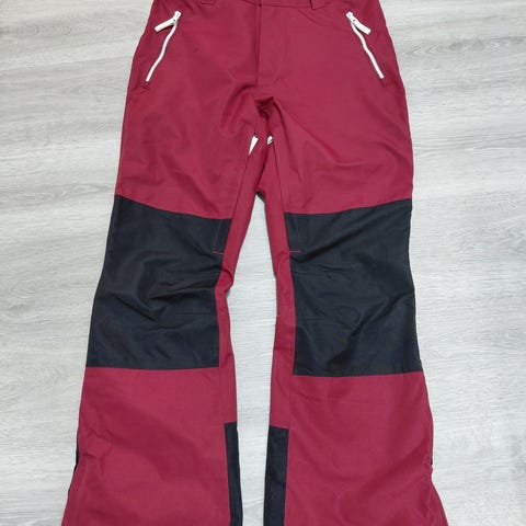 Edessä ja takana tahrat (saattaa lähteä pesussa) ja lahkeessa sisäpuolella alareunassa vuorikangas irronnut saumasta noin 2cm matkalta