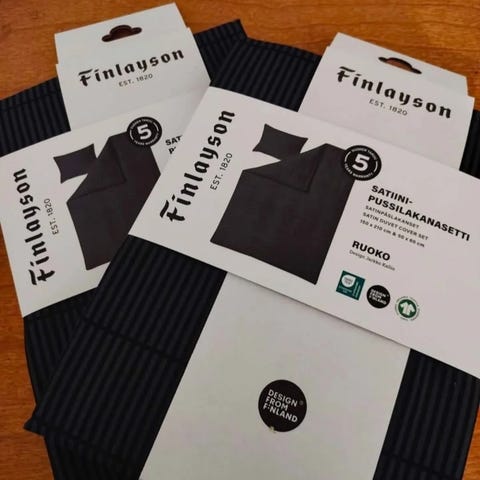 Uusi paketissa oleva finlaysonin satiinipussilakanasetti. Alma kuosi (poistunut väri)