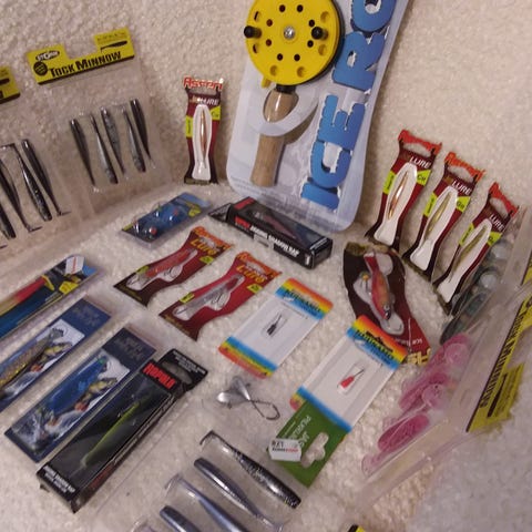 Vanhoja vähän käytettyjä pilkkitarvikkeita.