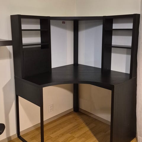 Myynnissä iso musta kulmamallinen työpöytä. Ostettu Ikeasta 2014 ja on yhä varsin hyvässä kunnossa, pari pientä kolhua on, mutta ei mitään pahoja käytön jälkiä.
