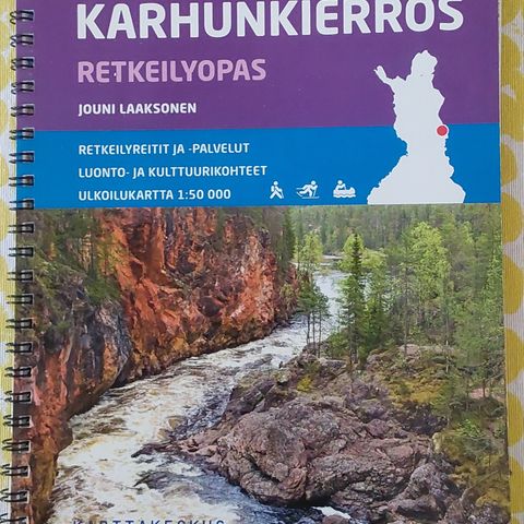 Karhunkierros Retkeilyopas Jouni Laaksonen sisältää retkeilyreitit ja palvelut, luonto- ja kulttuurihistoriaa sekä ulkoilukartat mittakaavassa 1:50 000.