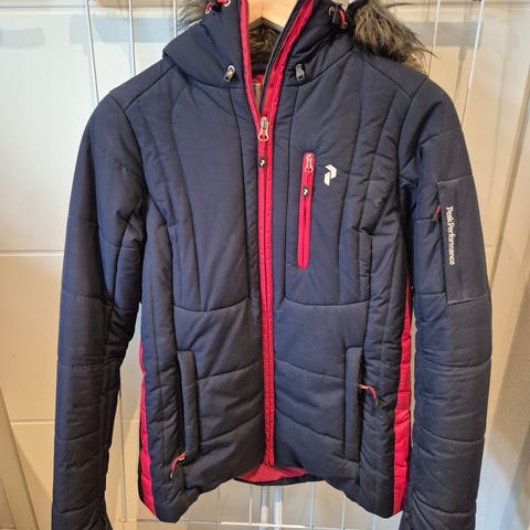 Muutoin hyväkuntoinen peak performance toppatakki/laskettelutakki, mutta hihansuissa kulumaa. Myös toiseen taskuun pitäisi vaihtaa vetoketju sekä itse takin vetoketju pitää vaihtaa. Reikiä tai muuta kulumaa ei ole.