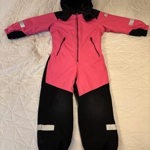 Hyväkuntoinen, yhdellä lapsella käytössä ollut Reiman toppahaalari. Vetoketjut, lenksut kaulukset ehjät. Polvissa pientä pehmentymää