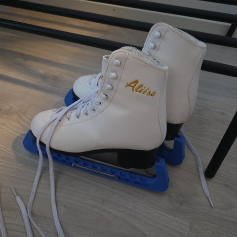 Alisa kaunoluistimet koko 36, valkoiset. Olleet vain yhdellä neitokaisella koulun luistelussa, joten ovat oikein hyvässä kunnossa seuraavalle. Hp. 20.00 euroa/tarjous.