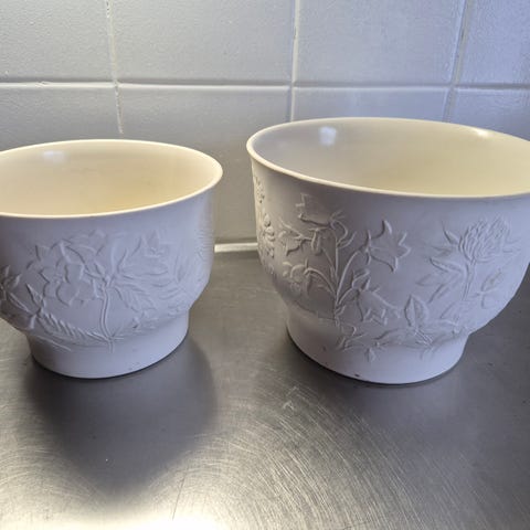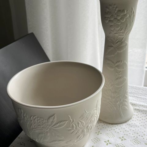 Käyttämätön Arabian valkoinen Suvi suojaruukku halkaisija ylhäältä 31 cm, sisältä pohjasta 21 cm ja korkeus 23,5 cm