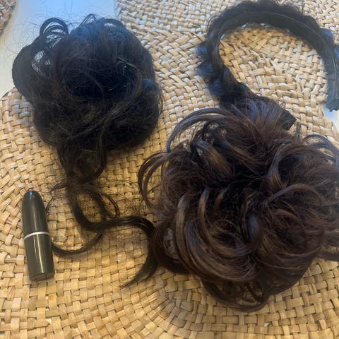 Kolme värjättyä keinokuituista lettiä, joissa on sinivihreitä ja violetteja sävyjä. Letit soveltuvat hiusten koristeluun ja kampauksiin.