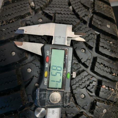 Hankookin nastarenkaat vuoden 2006 Fiat Puntoon sopivilla vanteilla. Pintaa jäljellä 5,4mm, 6,2mm, 6,5mm, 6mm.