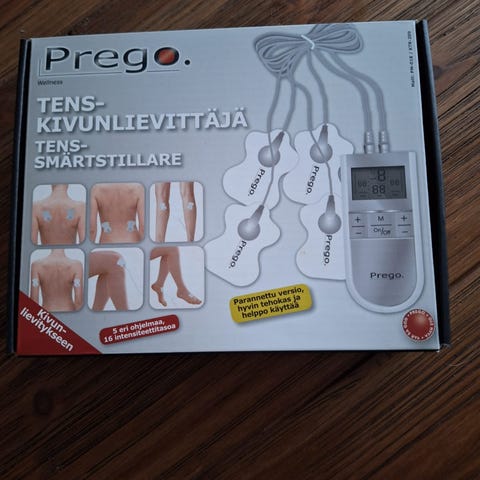 Prego TENS-Kivunlievittäjä on sähköinen kipulaite, joka tarjoaa kipua lievittäviä sähköimpulsseja. Laite on tarkoitettu kivunhallintaan ja sen mukana tulee elektrodit ja johdot. Käyttöalueita ovat muun muassa selkä ja muut kehon osat, joissa kipua halutaan lievittää.