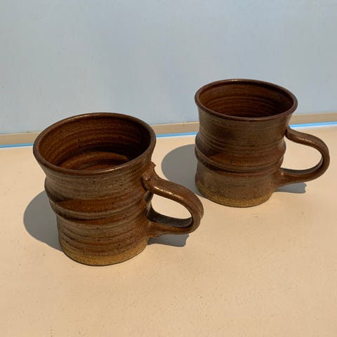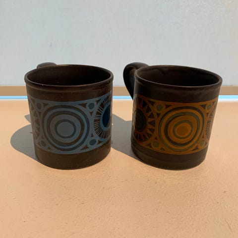 Keraaminen kahvimuki (täysin ehkä), jossa safari/heinikko-aiheinen ruskea kuvio. Made in England.
