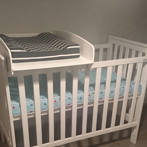 Lastenhoitopöytä pinnasängyn päälle. Meillä ollut Malm lipaston päällä eli ei käytetty kuten kuvassa pinnasängyn päällä.
