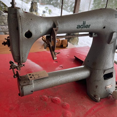 Adler ompelukone. Suutarin, farkkukaupan tai nahkojen ompelijan työkalu. Vahva ja kestävä kone työpöydällä valmiina käytöön. Kuljetus järjestyy pääkaupunki seudulla.