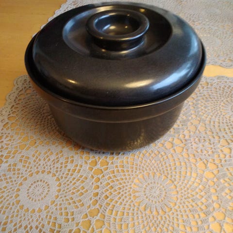 Arabia astiasto kannella, valmistettu keramiikasta. Väri valkoinen ja ruskea. Soveltuu ruoan tarjoiluun ja säilytykseen. Halkaisija 22 cm, korkeus 8 cm kannenkanssa 14 cm.