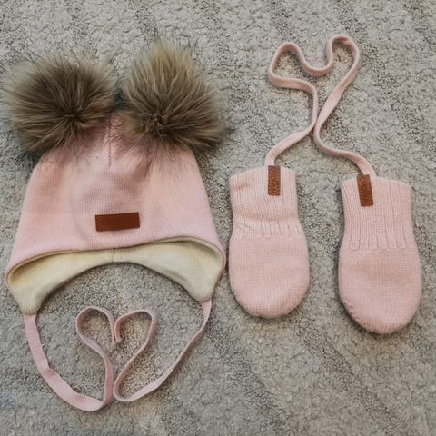 Musta merinovillainen Gugguu pipo koossa M (44-46?) ja vauvan tumput. Käytetyt, mutta siistit.