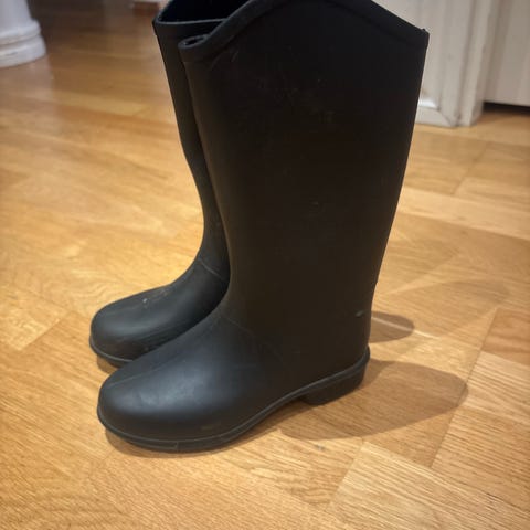 Mustat ratsastussaappaat, koko 34. Saappaat soveltuvat suojaamaan jalkoja kosteudelta ja sopivat käytettäväksi märissä olosuhteissa.