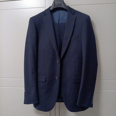Myydään uutena ostettu dressmannin tummansininen Wool Stretch-puku.