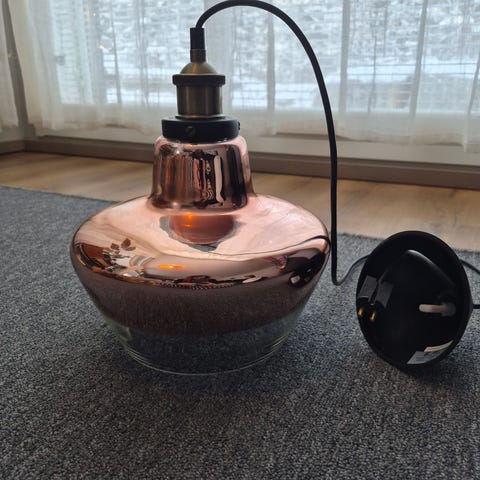 Hesperia on elegantti ripustettava valaisin, jossa on valkoinen lasikupu ja sen ympärillä metallinen koristekehys. Helppo ripustaa yksinkertaisen kattokupin sekä valmiiksi asennetun kattopistokkeen ansiosta.