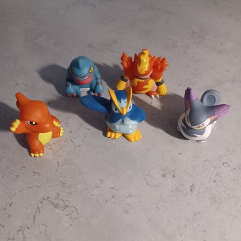 Pokemon figuureja 6 kpl. Korkeus noin 1 cm. Hinta 5 e.