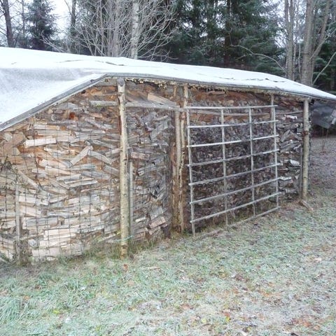 Sahattua polttopuuta lavalla