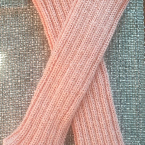 Paksu lanka ja isot puikot joten iso silmukka käsiala. Lämpimät.