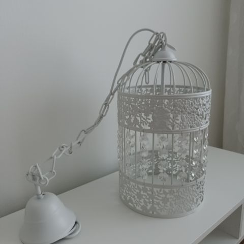 Punosmateriaalista ja mustasta metallista valmistettu lampunvarjostin.
