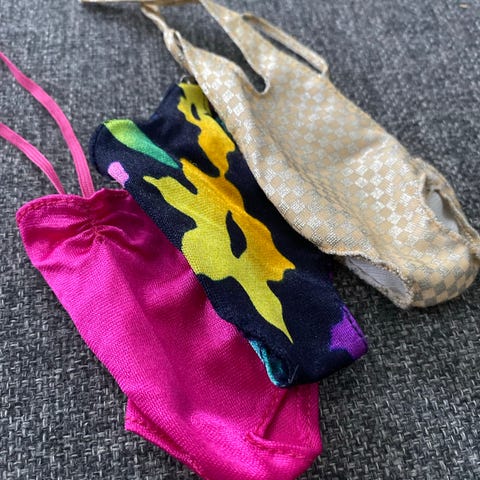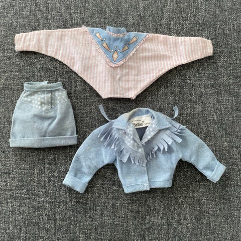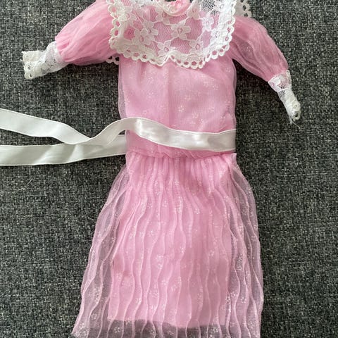Vanhoja Barbien vaatteita. En tiedä ovatko kaikki aitoa Barbie vaatetta. Crystal mekon helmassa takana tahra ja parista vaatteesta puuttuu nepparin vastakappale.