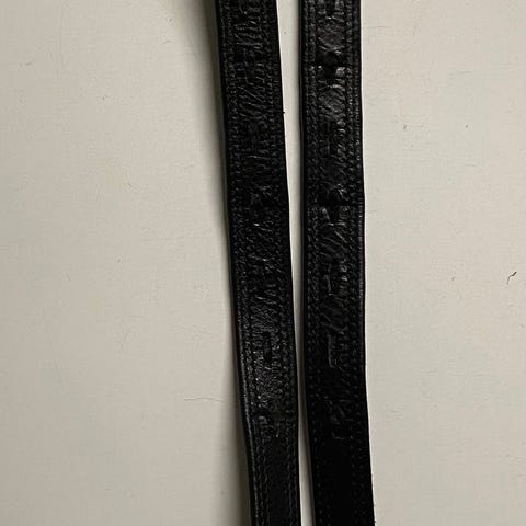 Tarpeettomana 80 cm, mustat webbersit/jalustinhihnat nahkaa, sisällä nylon vahvike. Käytetyt, mutta hyvässä kunnossa.