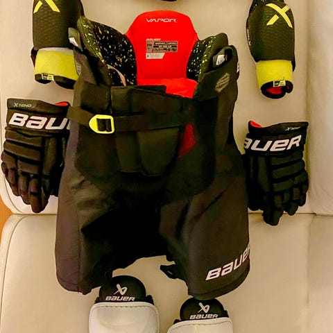 Hartiasuojat, kyynärsuojat, polvisuojat, housut, hanskat ja luistimet! Lisänä Jofa kypärä. Kuin uusi koko setti!
