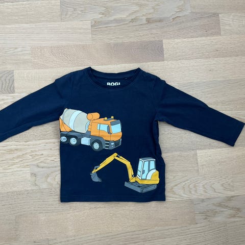 Bogin pitkähihainen trikoopaita, keltainen, traktorin ja betoniauton kuvat rinnuksissa. Lähes käyttämätön koska ehti jäädä meillä pieneksi. Kokomerkintä 80/86 cm.