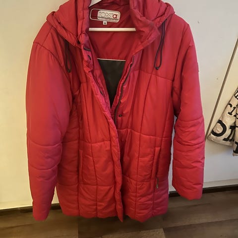 Käytetty, mutta vielä hyväkuntoinen. Hupun karva irrotettava. Koko 42.