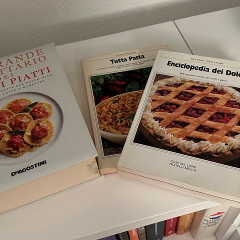 Annetaan kolme keittokirjaa. Helsingin Sanomien "ruokatorstai"- kirjassa on satunnaisia yliviivaustussilla tehtyjä merkintöjä (kuva). Kirjat vanhoja, painokset vuosilta 2004, 2011 ja 2014