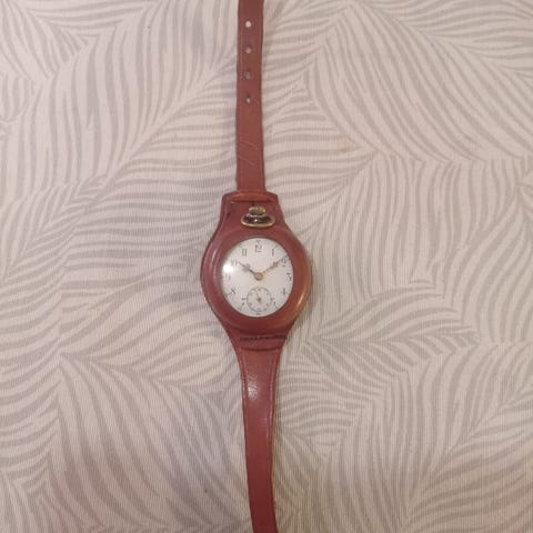 Vanha tasku/rannekello . Merkistä eikä iästä tietoa . Koneisto toimii jonkun aikaa kun heiluriratasta heilauttaa . Toinen isoista viisareista irronnut paikaltaan lasin alle . Ilmeisesti tätä on käytetty sekä tasku että rannekellona . Lasi myös ehjä . Mukaan saa uudemman aikaiset peräsinketjut joista ei nyt ollut kuvia .