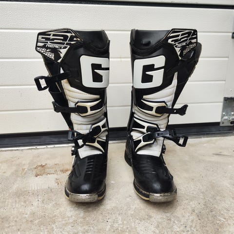 Melko vähän käytetyt ja siistit lasten crossi saappaat. Yksi solki puuttuu mutta ei ole haitannut mitään.