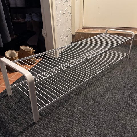 Shoes shelf, wooden and metal. 92 x 31 x H 34
