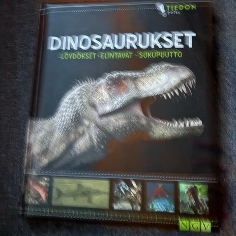 Dinomaailma -kirja, joka sisältää tietoa ja kuvia dinosauruksista ja niiden maailmasta. Kirjassa on kuvauksia dinosaurusten planeetasta, fossiileista ja muista esineistä, kuten hampaista. Sopii dinosauruksista kiinnostuneille lukijoille. Siistissä kunnossa.