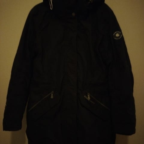 Kuvanmukainen Ahkka merkkinen talvitakki. Sivuilla vetoketju taskut. Väriltään tumma violetti. Koko. 44. HP. 45€