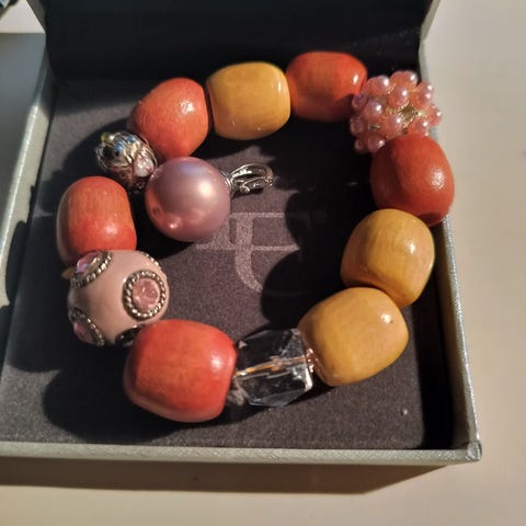 House of Elliot rannekoru makeanvedenhelmistä. Helmet pukotettu jouseen, koko sopii kaikille.