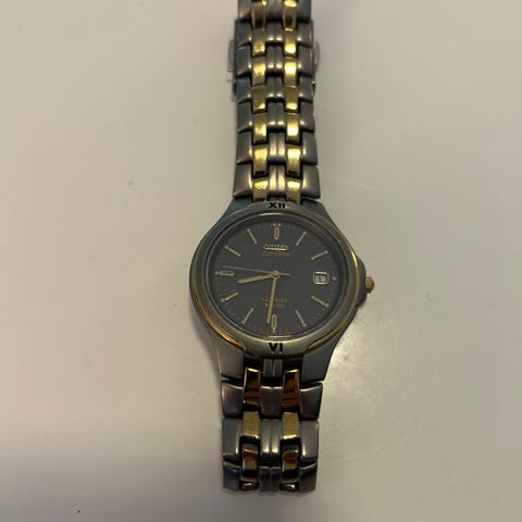 Citizen miesten rannekello. Kellossa on metalliranneke ja pyöreä kellotaulu. Kellon taulu on vaalean sävyinen, ja siinä on päivämäärän näyttö. Takakannessa on kaiverruksia ja kellon tekniset tiedot. Eko drive ei tarvitse pattereita. Ranneke n 23cm halkaisija.
