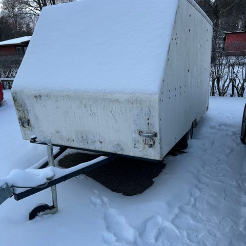 Umpiperäkärry valkoisella ulkovärillä. Mitat : pituus 3m , leveys 1,44m korkeus 1,74m.