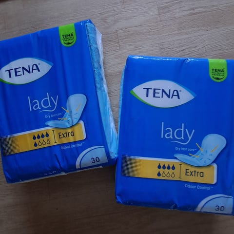 Ohuita inkontinenssisuojia kaksi avaamatonta pakettia ylimääräisenä, yhteishintaan.