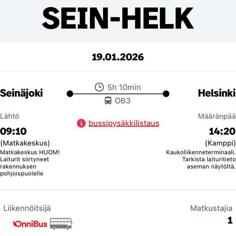 Onnibussi liput 16.1 klo14.05
