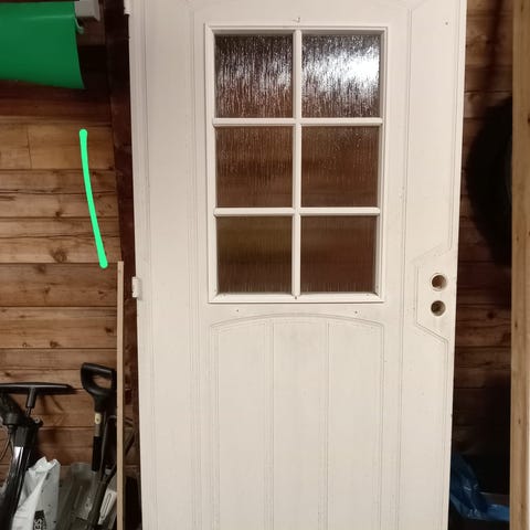 Ulko-ovi valkoisella lasi-ikkunalla