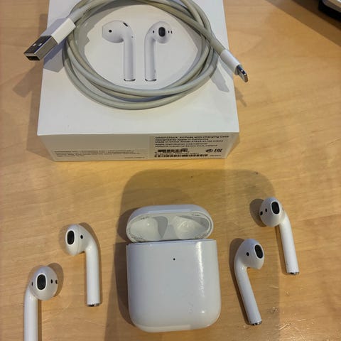 Apple AirPods 2.gen langattomat nappikuulokkeet. Käytetyt, mutta toimii edelleen moitteettomasti.