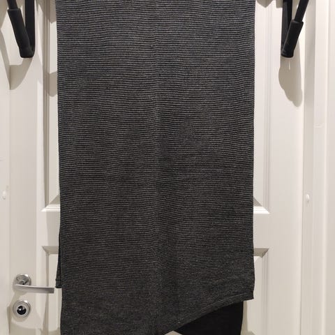 Joustinneulehuivi ja kaksi lankakerää, joista voi neuloa vaikka pipon ja neulepannan. Huivin pituus 120 cm + hapsut, leveys 16 cm.
