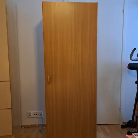 vaatekomeroryhmä neljä erillistä kaappia, yläkaapit irrallisia.